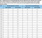 Von 2003 bis 2019 schwankte die Summe der Tagesmaxima auf beiden Koppeln (2,1 und 11,2 ha) auf allen Transekten der TP von 68 Individuen 2003 und 2006 (nur Ph. nausithous ) über fünf Individuen 2011 (Minimum) und 68 Individuen 2018 (Maximum, seit 2012 einschließlich Ph. teleius ) auf 63 Individuen im Jahr 2019 (Tab. 1 und Abb. 3). Populationsgrößen-Berechnungen für die große TP A auf Basis von Fang-Wiederfang-Untersuchungen ergaben für Ph. nausithous für 2003 (Jolly-Seeber/Lincoln-Petersen) 217 beziehungsweise 136 Tiere und für 2019, nachdem die Teilpopulation zwischenzeitlich erloschen war, 142 beziehungsweise 65 Tiere. Seit 2017 kommt Ph. teleius ebenfalls in TP A vor, nach Jolly- beziehungsweise Lincoln-Index mit 33 und 13 Tieren.