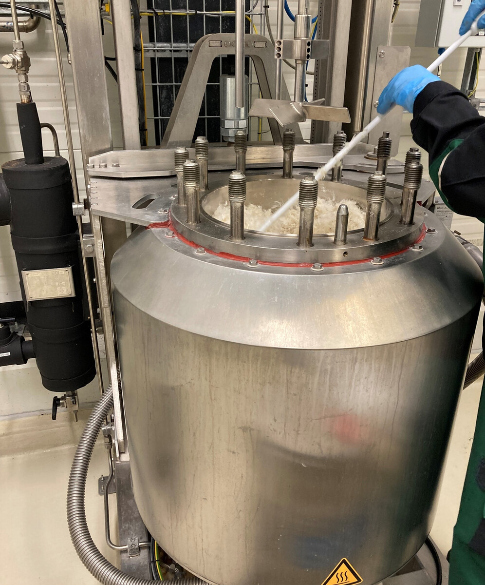 Im nächsten Schritt peilte das Fraunhofer-Team die Konversion der Federn im Großmaßstab an. Diese Hochskalierung fand am Fraunhofer-Zentrum für Chemisch-Biotechnologische Prozesse CBP in Leuna statt. Ziel war es zu beweisen, dass die Herstellung der Plattform-Chemikalien auf Keratin-Basis auch im industriellen Maßstab kostengünstig realisierbar ist. Dabei wurden mehrere Kilogramm Hühnerfedern verarbeitet, und das dabei produzierte Material konnte für erste vielversprechende Materialtests am Fraunhofer IGB und bei Henkel eingesetzt werden.