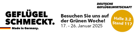 Vom 17. bis 26. Januar 2025 werden sich gut 1.400 Aussteller aus 60 Ländern etwa 300.000 Gästen auf der Internationalen Grünen Woche in Berlin vorstellen. Auch die Deutsche Geflügelwirtschaft ist wieder dabei und wirbt mit dem neuen Branchenslogan: Geflügel schmeckt. Made in Germany.