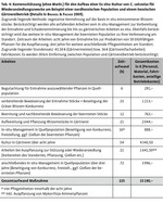 Die Kostenkalkulation einer Gärtnerei ergab, dass Maßnahmen an einer Cypripedium-Population sowie die In-Kulturnahme von Pflanzenmaterial mit dem Ziel der Vermehrung für Ausbringungsmaßnahmen nach einer Laufzeit von acht Jahren insgesamt 15 180 € kosten würde.
