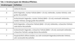 Die Struktur von Windwürfen ist z.T. schon auf kleinem Raum verschieden. Zur Klärung der Frage, inwieweit Vögel bestimmte Bereiche häufiger oder seltener nutzen, wurden die Untersuchungsflächen in Strukturtypen unterteilt (Tab. 3). Besondere Kriterien waren Größe und Dichte der gefallenen Bäume sowie Menge und Ausprägung von senkrecht aufgeklappten Wurzeltellern. Bereiche mit viel liegendem Totholz beinhalteten gleichzeitig auch einen großen Anteil an teils abgebrochenem, aber noch stehendem Totholz.