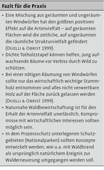 Werth et al. (1998) stellten bei einem Vergleich auf ungeräumten Windwürfen sogar nahezu doppelt so viele Brutvogelarten fest wie auf geräumten.