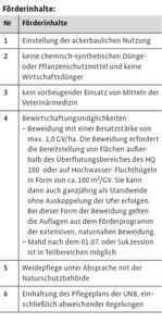 Als besonders förderfähige Maßnahmen werden (a) extensive ganzjährige Standweide mit Rindern und Pferden, (b) Umwandlung von Ackerland in beweidetes Extensivgrünland in Überschwemmungsgebieten und auf Niedermoorböden sowie (c) Biotoppflege durch Schafe und Ziegen empfohlen.