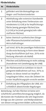 Eine wichtige Forderung in diesem Kontext ist auch die Kombinationsmöglichkeit von Maßnahmen aus Landschaftspflegeprogrammen mit Bausteinen der Agrarumweltprogramme und mit Förderungen aus der 1. Säule auf identischen Flächen. Ein konkretes Beispiel sind die notwendigen Pflegearbeiten auf Extensivweiden.