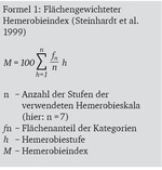 Mithilfe des Hemerobieindexes kann der Kultureinfluss für eine Gebietseinheit (z.B. einer Gemeinde) zusammenfassend dargestellt werden. Damit können unterschiedliche räumliche Einheiten miteinander verglichen oder mit Hilfe mehrerer Zeitschnitte die Entwicklung der Hemerobie dokumentiert werden. Nach Steinhardt et al. (1999) wird dazu der flächengewichtete Mittelwert aller Hemerobiewerte eines Landschaftsausschnittes berechnet. Dieser Hemerobieindex findet bereits breite Anwendung (Frank et al. 2012, Fu et al. 2006, Tasser et al. 2008, Wrbka et al. 2003: 185).