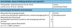 Nach § 8 BayKompV wird der Kompensationsumfang für flächenbezogen bewertbare Merkmale und Ausprägungen des Schutzgutes Arten und Lebensräume über Wertpunkte ermittelt. Dabei wird der „Kompensationsumfang" über die „Aufwertung durch die Kompensationsmaßnahme" aus der Differenz der Wertpunkte zwischen Ausgangszustand und Prognosezustand [ggf. nach Abschlag von 1 – 3 Wertpunkten je nach Dauer der Entwicklungszeit (< 25 Jahre, 25 – 79 Jahre und > 80 Jahre)] und Multiplikation mit der „Kompensationsfläche in m²" ermittelt (siehe hierzu auch die Matrix in Tab. 4).