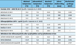Es zeigt sich, dass die tyrphobionten/-philen Arten relativ einheitliche Toleranzbereiche aufweisen. Die Mediane der Werte variieren nur unwesentlich, die Streuungen partiell stärker. In Tab. 2 sind die durchschnittlichen (gerundeten) Minimal-, Median- und Maximalwerte für jeden Klimafaktor aufgeführt. Dagegen gespiegelt wurden die Werte für die klimatologische Periode 1950 – 2000 und die Klimaprojektion bis 2070. Es zeigen sich folgende Tendenzen:
