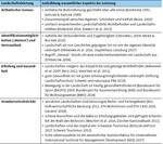 - Berücksichtigung verschiedener Regionen und Institutionen : Durch die Kleinräumigkeit der Schweiz war die Organisation eines Workshops mit Vertreterinnen und Vertretern aus den verschiedenen Regionen und Institutionen verhältnismäßig einfach, doch sollte dies entsprechend auf Länderebene in größeren Staaten ebenfalls angestrebt werden und möglich sein.