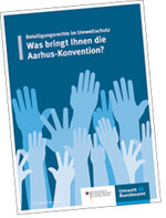 Das Umweltbundesamt hat eine Broschüre herausgegeben, die die Rechte von Bürgerinnen und Bürgern beim Engagement im Umweltschutz im Rahmen der Aarhus-Konvention erläutert. Die Aarhus-Konvention hat das Ziel, die Beteiligung der Zivilgesellschaft im Umweltschutz zu erleichtern. Dazu spricht dieses internationale Umweltabkommen der Öffentlichkeit beim Zugang zu Umweltinformationen, bei der Beteiligung an umweltrelevanten Entscheidungsprozessen und bei der Überprüfung staatlichen Handelns durch Gerichte besondere Rechte zu.
