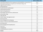 Als wichtigste Einflussgrößen wurden 18 Variablen mit einem Wert von mindestens 0,8 % relativen Einflusses identifiziert (Tab. 2). Ihr relativer Einfluss addiert sich insgesamt auf 97,4 %.