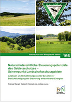 Unter dem Titel „Naturschutzrechtliche Steuerungspotenziale des Gebietsschutzes Schwerpunkt Landschaftsschutzgebiete“ analysieren die Autoren Andreas Mengel, Deborah Hoheisel und Andreas Lukas alle nationalen Kategorien des Gebiets- und Objektschutzes und präsentieren die Ergebnisse empirischer Untersuchungen zu Landschaftsschutzgebieten in acht Beispielregionen. Der Band enthält außerdem eine vertiefte Bearbeitung ausgewählter Handlungsfelder und Steuerungsaspekte im Hinblick auf Natur- und Landschaftsschutzgebiete sowie die Ableitung von Empfehlungen insbesondere zu Landschaftsschutzgebieten und zur Steuerung des Ausbaus erneuerbarer Energien mit Mitteln des Gebietsschutzes. Bestellt werden kann die Veröffentlichung für 36 Euro unter WebcodeNuL4028 . Sie kann auch als E-Book für 29,99 Euro erworben werden.