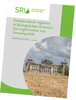 Der Sachverständigenrat für Umweltfragen (SRU) hat unter dem Titel „Demokratisch regieren in ökologischen Grenzen – Zur Legitimation von Umweltpolitik“ ein Sondergutachten vorgelegt, in dem die Legitimationsgrundlagen der Umweltpolitik reflektiert werden. Dabei macht der Umweltrat deutlich, dass der Staat zu einer starken Umweltpolitik verpflichtet ist, die die Lebensgrundlagen der Menschen erhält. Derzeit trage Deutschland jedoch durch seine wirtschaftlichen Aktivitäten in erheblichem Maße zur Umweltbelastung bei. Der SRU kritisiert dabei unter anderem die mangelnde Durchsetzungsfähigkeit des Umweltressorts gegenüber anderen Ressorts.