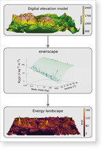 Traditionelle Bewegungsmusterkarten basieren meist auf Langzeit-Erhebungen so genannter Telemetriedaten. Diese stammen von einzelnen Tieren mit Funksendern. Das ist oft zeitaufwendig und teuer. In manchen Gebieten können aufgrund fehlender Funkverbindungen überhaupt keine Daten erhoben werden. Mit „enerscape“ haben die Forschenden nun eine Software entwickelt, mit der solche Karten einfach und kostengünstig erstellt werden können. Aus dem Gewicht eines Tieres und dem allgemeinem Bewegungsverhalten der Art wird zunächst der Energieaufwand ermittelt, den ein Tier für eine Strecke benötigt. Der ermittelte Energieaufwand wird dann mit Topographie-Informationen eines Gebietes verknüpft. Genutzt werden kann die Software als Package der Open-Source-Software R. Über NuL4262 gelangen Sie zum Code und dessen Erläuterung.