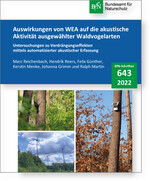 Ein Forschungsvorhaben liefert nun erste Erkenntnisse über Störwirkungen und Verdrängungseffekte in Bezug auf ausgewählte Waldvogelarten. Die Ergebnisse sollen einen Beitrag zur Optimierung des Planungs- und Genehmigungsprozesses für betroffene Arten leisten und das Risiko von erheblichen Beeinträchtigungen im Sinne des europäischen Arten- und Gebietsschutzes sowie der Eingriffsregelung minimieren. Ziel ist die qualitative und quantitative Verbesserung der Datenlage, um hinreichende Aussagen treffen und notwendige Maßnahmen für störungsempfindliche Arten ableiten zu können. Erschienen sind die Ergebnisse als BfN-Schriften 643. Sie können den Band unter Webcode NuL4262 kostenlos herunterladen.