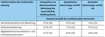 Mehr als zwei Drittel der Befragten sind der Meinung, dass der Nutzen von Natur und Landschaft für den Menschen bzw. für dessen Wohlergehen in der Landschaftsplanung derzeit eher nicht bis nicht ausreichend dargestellt wird (Abb. 3). Nach Auffassung der Befragten kann die Betonung des Beitrages von ÖSL als Grundlage für das menschliche Wohlergehen dazu beitragen, die Öffentlichkeit stärker für die Belange von Natur und Landschaft zu sensibilisieren (76 %). Eine bessere Umsetzung der Ziele der Landschaftsplanung wird dagegen nur von einem Drittel der Befragten erwartet und damit deutlich zurückhaltender beurteilt. Vorteile für die Kommunikation werden dabei weniger für die inhaltliche Diskussion unter Fachexperten, sondern eher mit Bürgern, Verbänden und Landnutzern (69 % Zustimmung) gesehen.