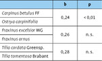 Hain- und Hopfenbuche bzw. Gemeine Esche und Blumenesche zeigen fast identische Artenüberlappungswerte und unterscheiden sich geringfügig von den ähnlicheren Zikadengemeinschaften der Winter- und Silberlinde (Tab. 3).