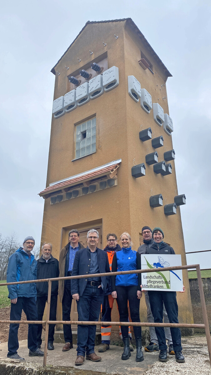 von Landschaftspflegeverband Mittelfranken e.V. erschienen am 11.10.2025Der LPV übernahm die Planung und Koordination der Umgestaltung samt Finanzierungsantrag. An der Außenfassade wurden Nistmöglichkeiten für verschiedene Vogelarten wie Mehlschwalben und Stare sowie Quartiere für Fledermäuse angebracht. Auch das Turminnere wurde nutzbar gemacht: durch ein taubensicheres Einflugfenster gelangen gebäudebewohnende Fledermäuse in das Innere und können sich in angebrachten Spalten dem Sonnenlicht entziehen. Ein Schleiereulenkasten ergänzt das Nistplatzangebot im Inneren.