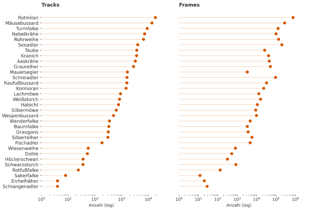 Auf der Basis der Datenauswertung können dann nicht nur Aussagen über das Artvorkommen am Standort, der artspezifischen Flugaktivität sowie deren saisonaler Veränderung während der Datenerhebung getroffen werden. Es ist auch möglich aufgrund der präzisen Positionsbestimmung Aussagen über die artspezifische räumliche Verteilung der detektierten Flüge und folglich über die kleinräumige Nutzung von Habitaten zu treffen. Über die hinterlegten Bildaufnahmen kann zudem jederzeit nachvollzogen werden, welches Flugverhalten der beobachtete Vogel zeigte.