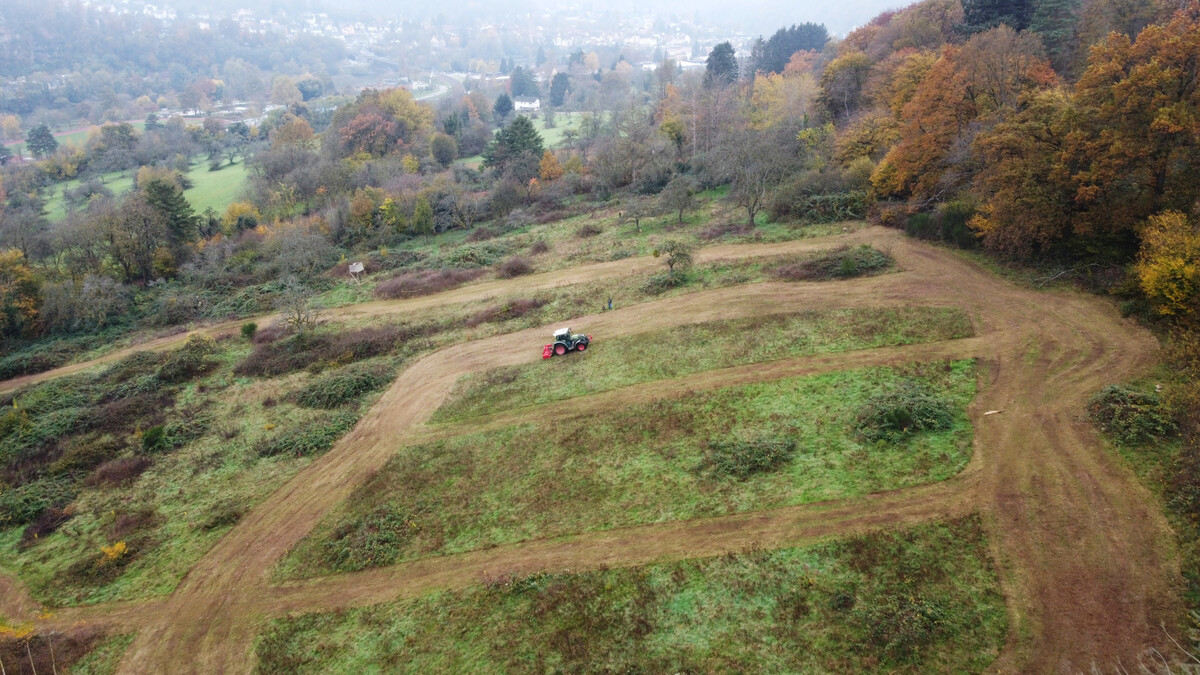 Auch die praktische Umsetzung war arbeitsteilig organisiert: Ein ortsansässiger Landwirt übernahm die groben Arbeiten (Mulchen von Brombeeren und Gehölzen sowie Aufnahme und Abtransport des Schnittguts mittels Rundballenpresse bei Frost), während ein weiterer Dienstleister mit mehreren Mitarbeitenden die Feinarbeiten in Handarbeit ausführte. Ehrenamtliche Helferinnen und Helfer waren insbesondere beim Rückbau alter Zäune sowie bei der Entsorgung von Unrat maßgeblich eingebunden.