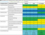 Die Erfassung und Bewertung der Gewässerstruktur erfolgte nach dem Verfahren der LAWA (2019). Im Rahmen von sechs Hauptparametern wurden 14 funktionale Einheiten (Tab. 1) erfasst und mit dem Leitbild verglichen. Bei einem Grad der Konformität mit dem Referenzzustand von mindestens 80 % gilt ein sehr guter morphologischer Zustand, bis 60 % ein guter, bis 40 % ein mäßiger und bis 20 % ein unbefriedigender. Darunter ist der Zustand schlecht.