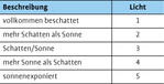 In jedem Plot wurden alle Gefäßpflanzen nach der Methode von Braun-Blanquet (1964) erfasst. Für die häufig nur vegetativ vorliegenden Stadien wurde Eggenberg & Möhl (2013) genutzt, aus König (2005) ließen sich lokale Angaben zum Vorkommen entnehmen, die Nomenklatur folgt Jäger (2017). Zur wissenschaftlichen Weiterverwendbarkeit wurden die geografischen Koordinaten der Plots ermittelt. Um einen Einfluss auf die Vegetation zu überprüfen, wurde nach einem zuvor festgelegten Schlüssel ein Licht-Parameter geschätzt (Tab. 1).