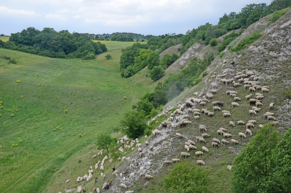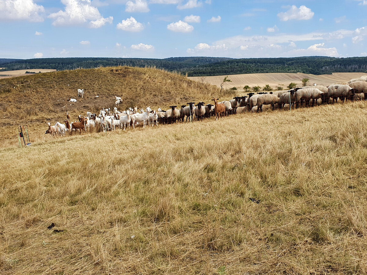 Grundsätzlich gilt, dass diejenige Nutzungsform, die zur Entstehung einer Pflanzengesellschaft geführt hat, auch die richtige Pflegeform ist, um sie zu erhalten. Während der letzten 100 bis 150 Jahre wurden Federgras-Steppen in Deutschland vor allem mit Schafen und Ziegen in Triftweide gepflegt (Abb. 3). Teilweise waren auch Rinder beteiligt, doch zumindest für die heutigen Rinderrassen ist die Kost der Federgras-Steppe kaum mehr geeignet. Folgerichtig wäre Triftweide mit Schafen und Ziegen heute die beste Pflegeform für die Federgras-Steppe (Ssymank et al. 2022).